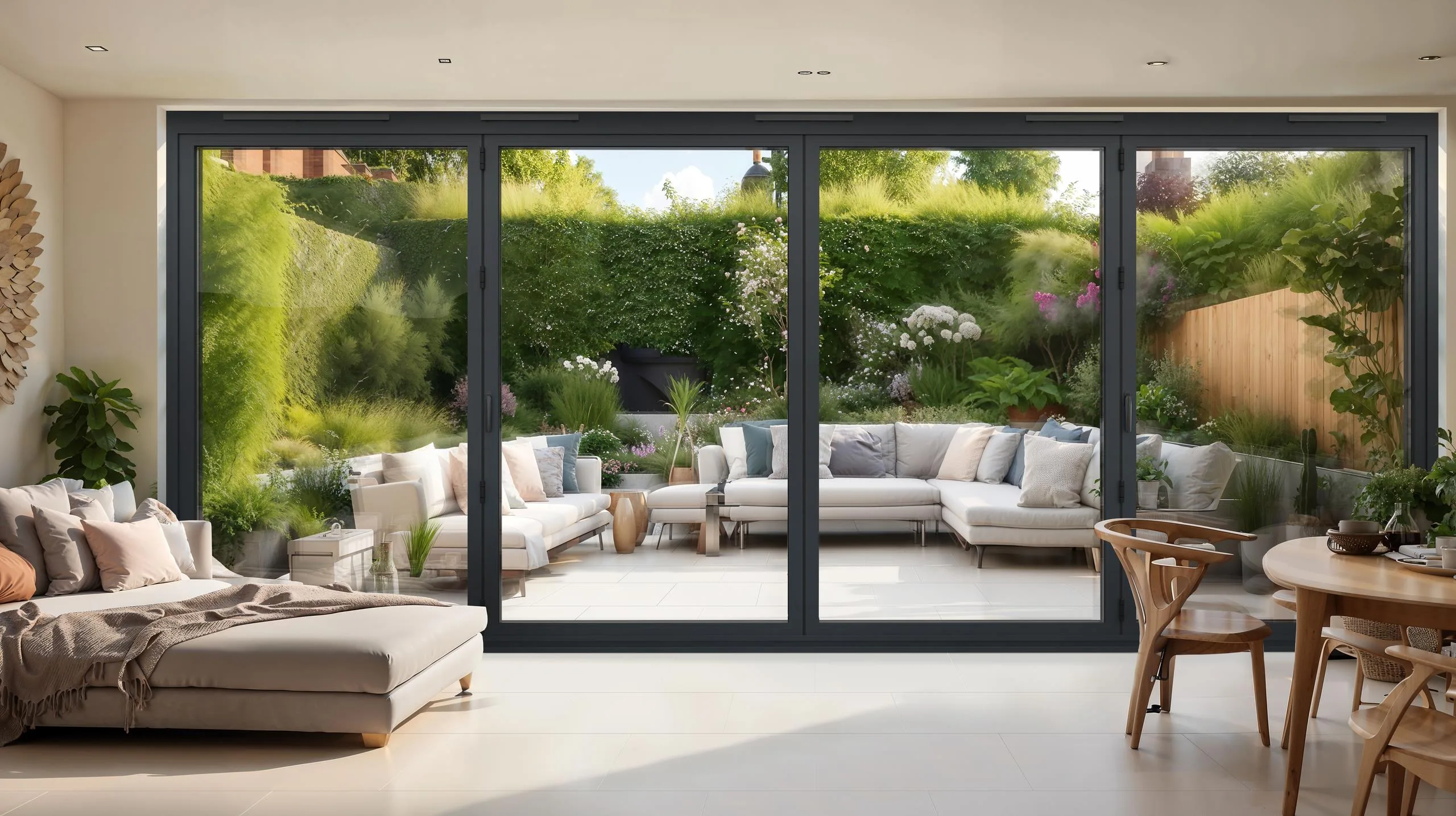 Built with the innovative Thermlock® multi-chamber thermal core, these bifold doors help keep warmth inside your home and reduce energy loss. Their advanced insulation makes them ideal for the UK climate, giving you a comfortable, energy-efficient living environment in every season.