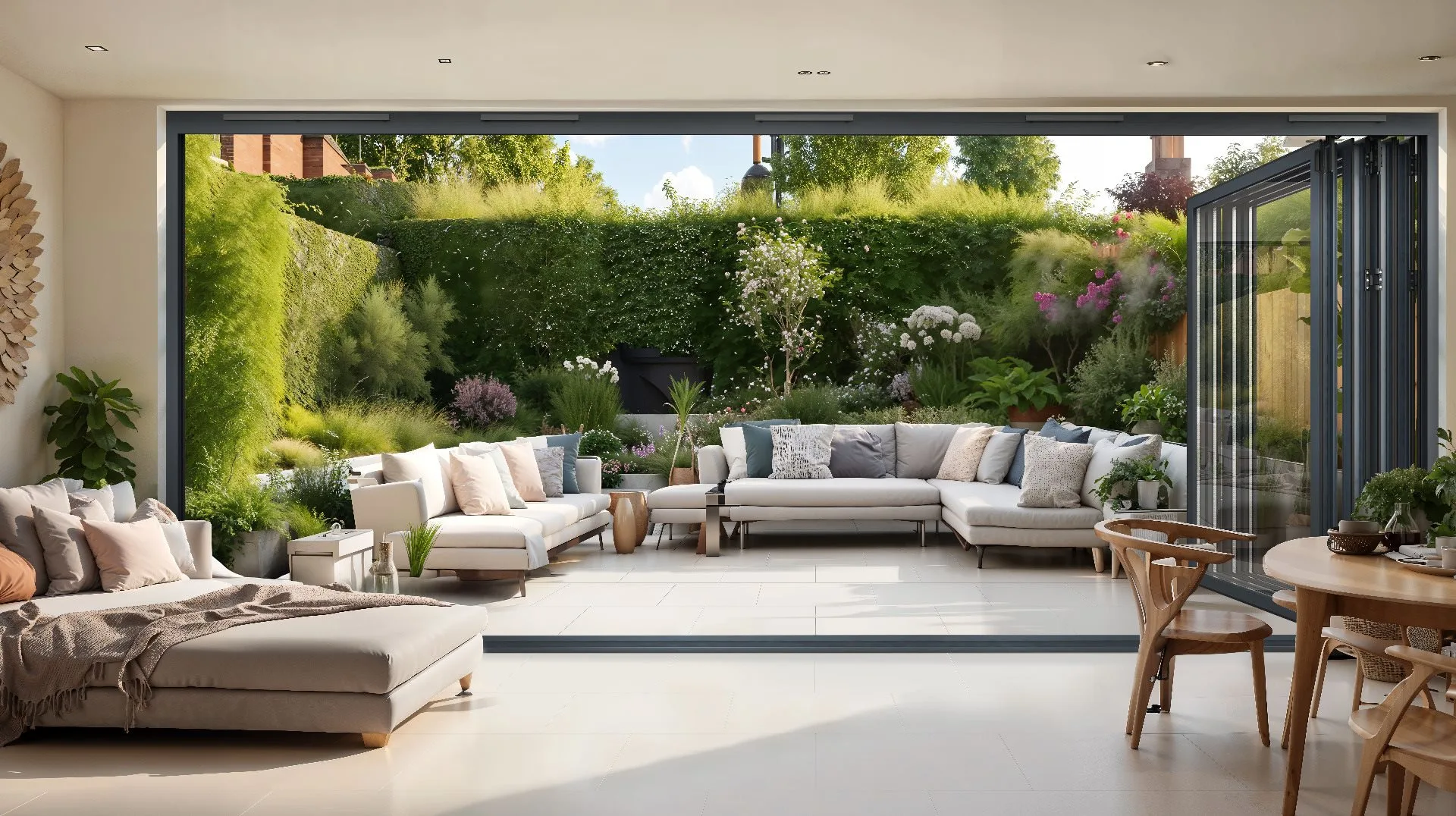 Your home stays well-protected with robust five-point locking, double deadbolts and full-length security interlocks. Sheerline bifold doors not only look stylish but also offer peace of mind, combining smooth operation with weather-sealed thresholds and dependable long-term security.