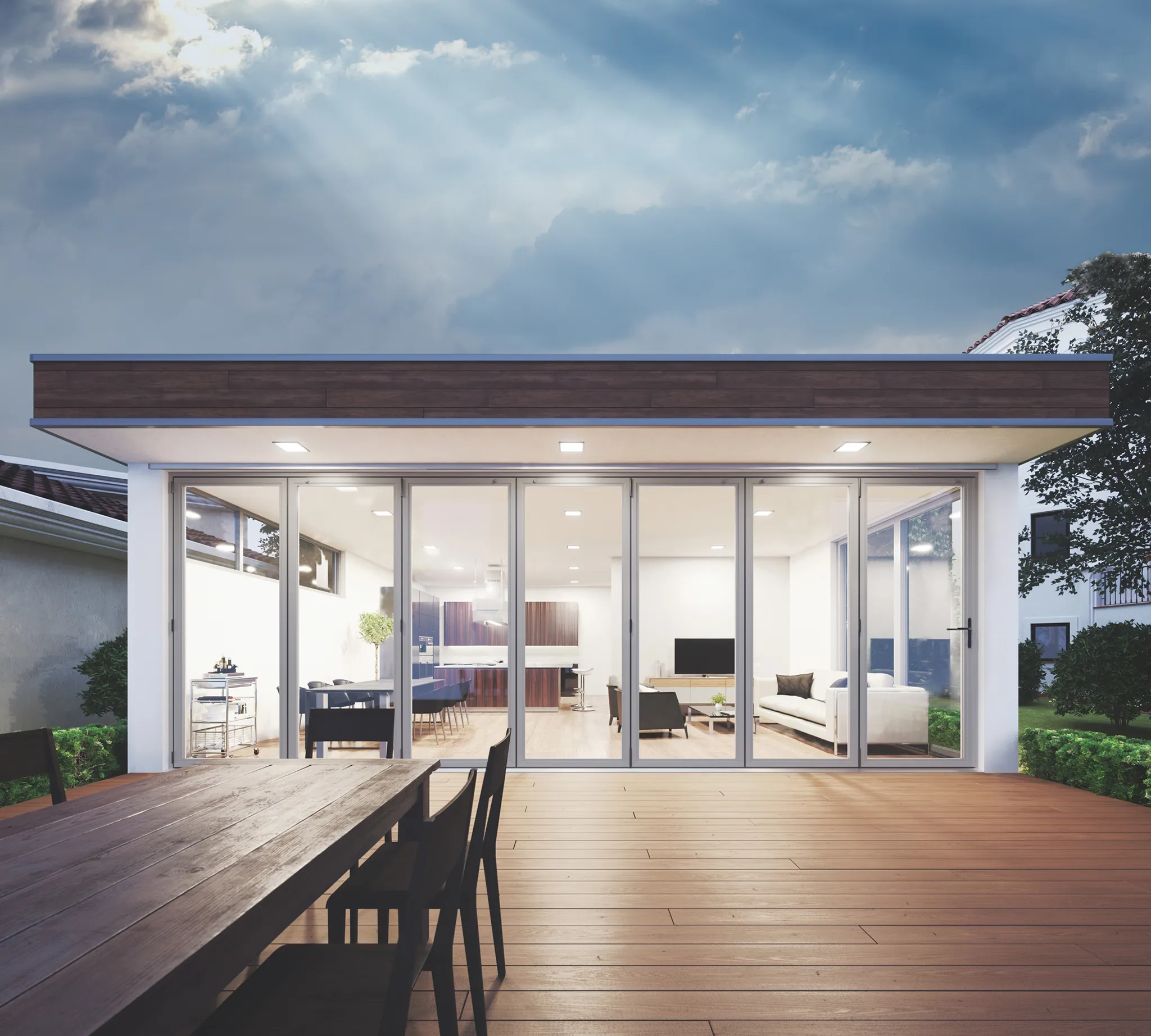 Our Sheerline Prestige bifold doors create seamless indoor–outdoor living with slim aluminium frames, bright interiors and advanced Thermlock® insulation, delivering exceptional thermal performance, consistent sightlines and smooth operation through innovative rollers and refined design.